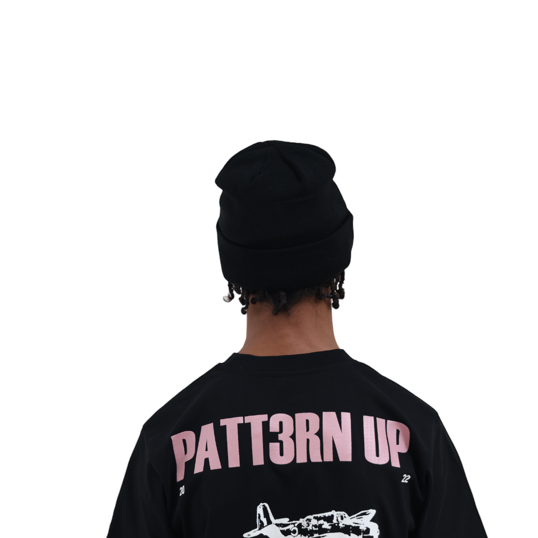 Satin Lined Script Beanie - Pink/Black